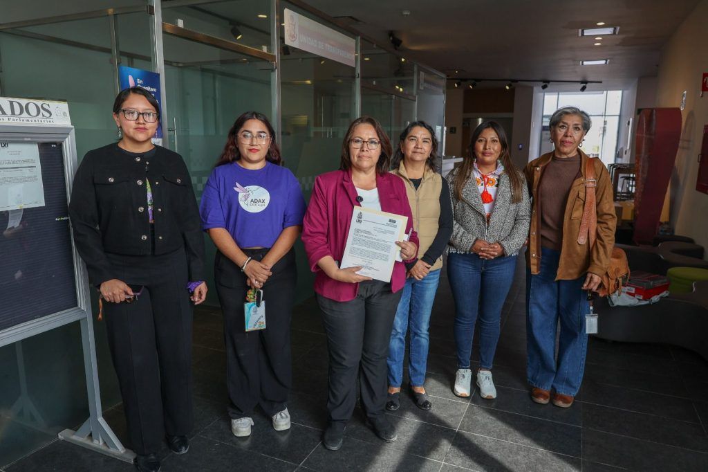 Acudió acompañada de las legisladoras María Blanca Flor Benítez Estrada y María Eugenia Margarito Vázquez, también integrantes del Grupo Legislativo de MORENA, así como de representantes del colectivo ADAX Digitales.