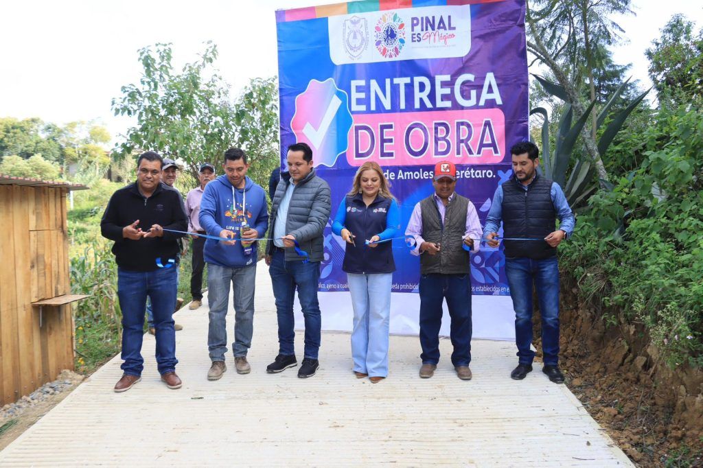 Pinal de Amoles, Qro.-La presidenta municipal de Pinal de Amoles, Lupita Ramírez Plaza, en compañía del presidente del SMDIF, Iván Zárate, encabezó la entrega de la obra de construcción con concreto hidráulico en tres calles de la comunidad de San Pedro El Viejo, como parte del programa FAISMUN 2025.