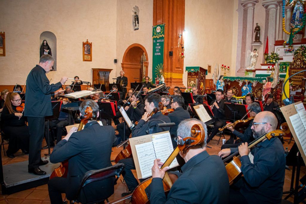 Landa de Matamoros, Qro., viernes 31 de octubre de 2025.-Teniendo como escenario la Misión de Santa María del Agua de Landa, la Orquesta Filarmónica de Querétaro ofreció un concierto que las familias landenses pudieron disfrutar, con un repertorio musical que resaltó el talento y la pasión de cada uno de sus integrantes.