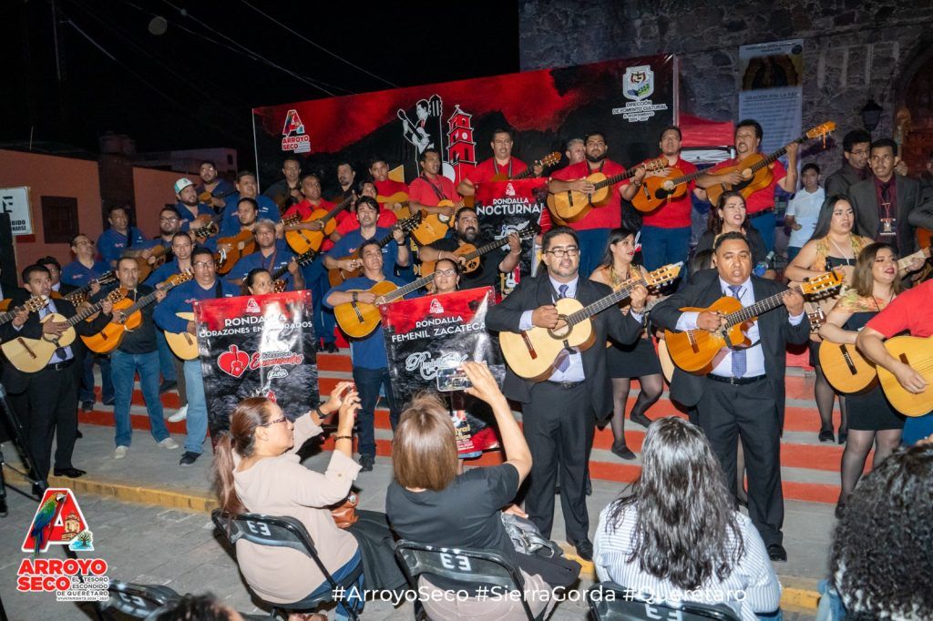 Acompañadas por la ciudadanía arroyosequense, la Rondalla Femenil de Zacatecas, la Rondalla Santo Domingo, la Rondalla Corazones Enamorados, la Rondalla Siete Caballeros, la Rondalla Nostalgias, la Rondalla Nocturnal, la Rondalla Voz del Corazón y la Rondalla Diamante de Amor recorrieron con su música las principales calles de la cabecera municipal, deleitando a los presentes con canciones del recuerdo durante el concierto realizado frente al atrio de la iglesia.