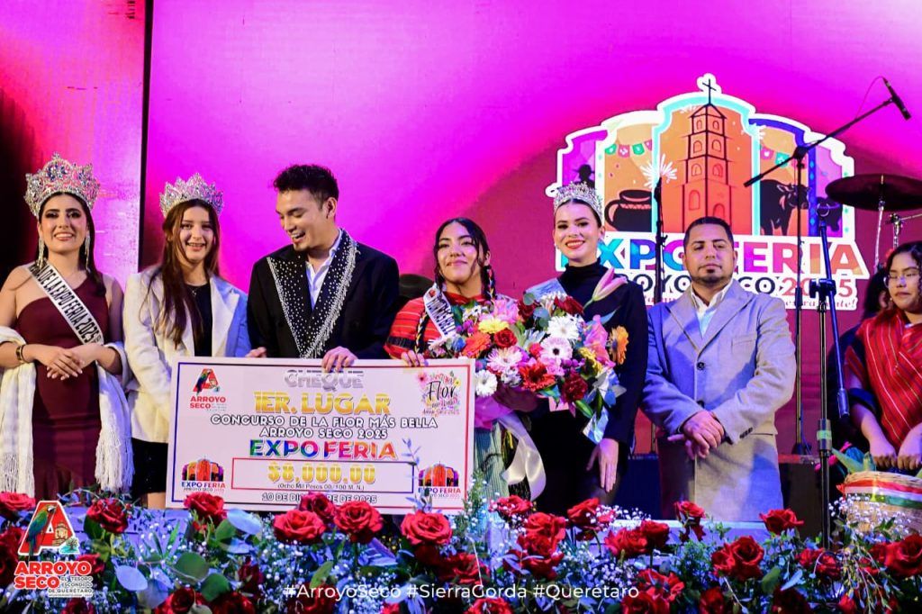 La jornada continúo con el Certamen “La Flor Más Bella del Campo” de la ExpoFeria Arroyo Seco 2025, en donde participaron Miriam Judith Zúñiga representando a Purísima de Arista, Lluvia Guadalupe Mata representando a la subdelegación de La Loma, Mayte Gonzáles representando a la Cabecera Municipal de Arroyo Seco,